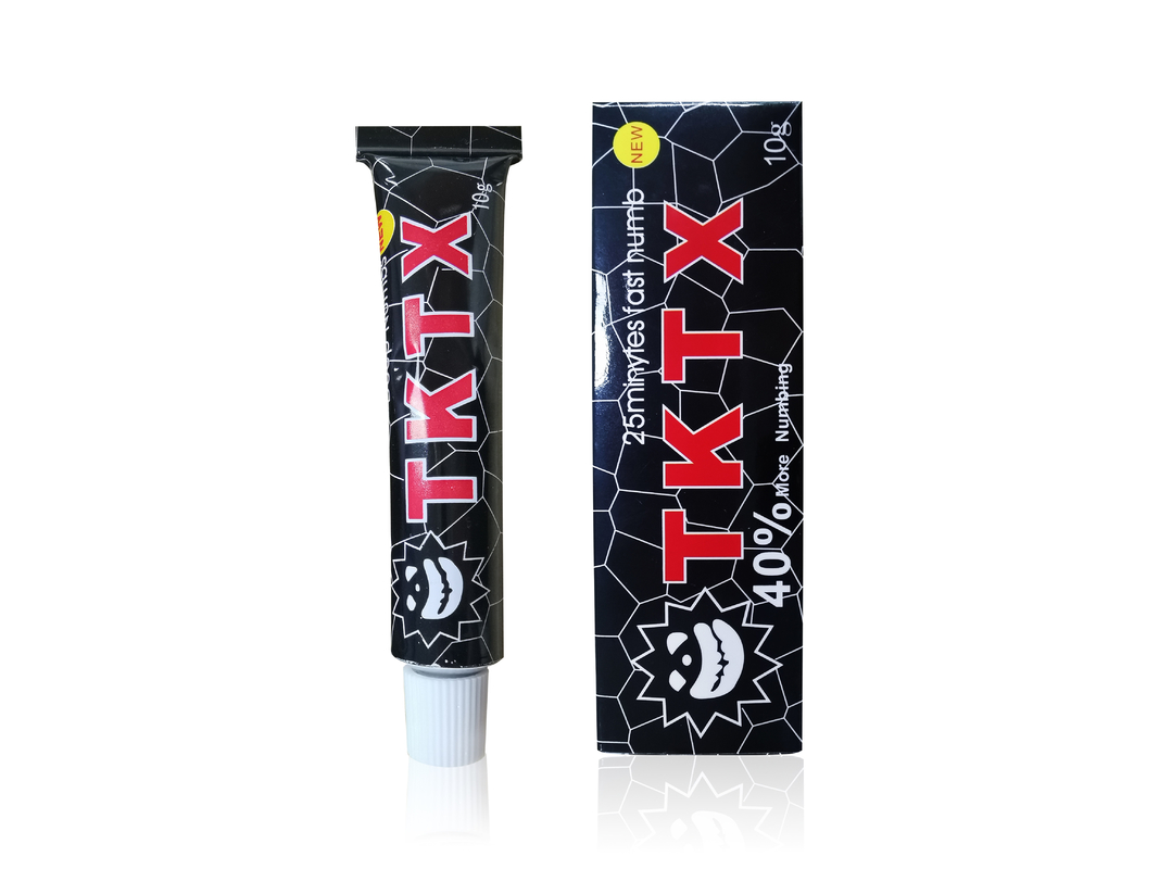 TKTX est une crème engourdissante profonde très populaire et est employé pour la douleur micro d'aiguille, tatouer, la perforation de corps, le retrait de tatouage de laser, l'épilation de laser, le cirage et les cosmétiques permanents.